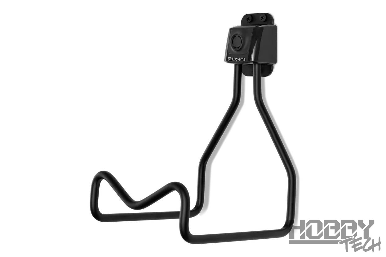 Odolný úložný hák pro křovinořezy, vhodný pro téměř všechny křovinořezy a vyžínače na trhu. Háček lze zavěsit na zeď nebo kolejnici a je kompatibilní s úložným systémem Husqvarna.