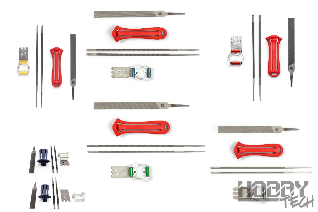 - Různé druhy sad na ostření řetězu