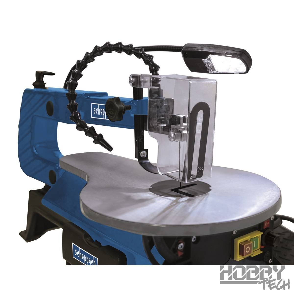 Lupínková pila Scheppach Deco-XLS je díky novému nožnímu ovladači velmi snadno ovladatelná i při řezání velmi složitých tvarů. Na stroji si nastavíte potřebné otáčky a lehkým tlakem na nožní pedál pak stroj jednoduše zapnete nebo vypnete, kdykoliv to potřebujete. Obě ruce tak máte po celý čas volné a můžete kontrolovat precizní posun obrobku při řezání. Pila je skvělým pomocníkem pro modeláře i domácí kutily. Dokáže vyřezat přesné a komplikované tvary ve dřevu, plastu, kovu, plexisklu a dalších materiálech. Základem je velmi silný motor s nastavitelnými otáčkami. Velmi pevné paralelní rameno a téměř bezvibrační uložení pilového plátku pak dovoluje, spolu se správně zvolenou rychlostí, provádět dokonale čisté řezy. Dokonalou vizuální kontrolu obrobku zajišťuje průhledný bezpečnostní kryt pilového plátku, nastavitelné pracovní LED osvětlení s odděleným vypínačem a systém odsávání pilin z řezné dráhy. Pracovní stolek je nastavitelný v úhlu až 45°. Výhodou je i systém rychlé a snadné výměny pilového listu pomocí rychloupínacího knoflíku a možnost namontovat na pilu pilový plátek jak s pojistným kolíkem, tak i s hladkým koncem. Pila Scheppach má i konektor na odsávání pilin odsavačem a montážní otvory v podstavci na pevné přichycení k pracovní desce.