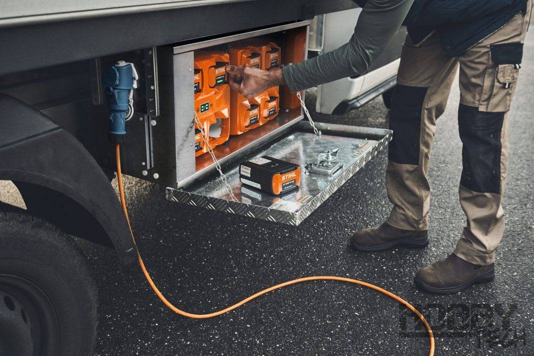 Jako mobilní nabíjecí řešení je STIHL CB 1 ideální pro profesionály v zahradnictví a terénních úpravách, komunálních provozech a při správě nemovitostí. Díky přiložené sadě upevňovacích prvků jej lze snadno namontovat na vhodné vozidlo nebo přívěs – jako podlahový nebo plošinový box na vozidle nebo na ložnou plochu přívěsu.