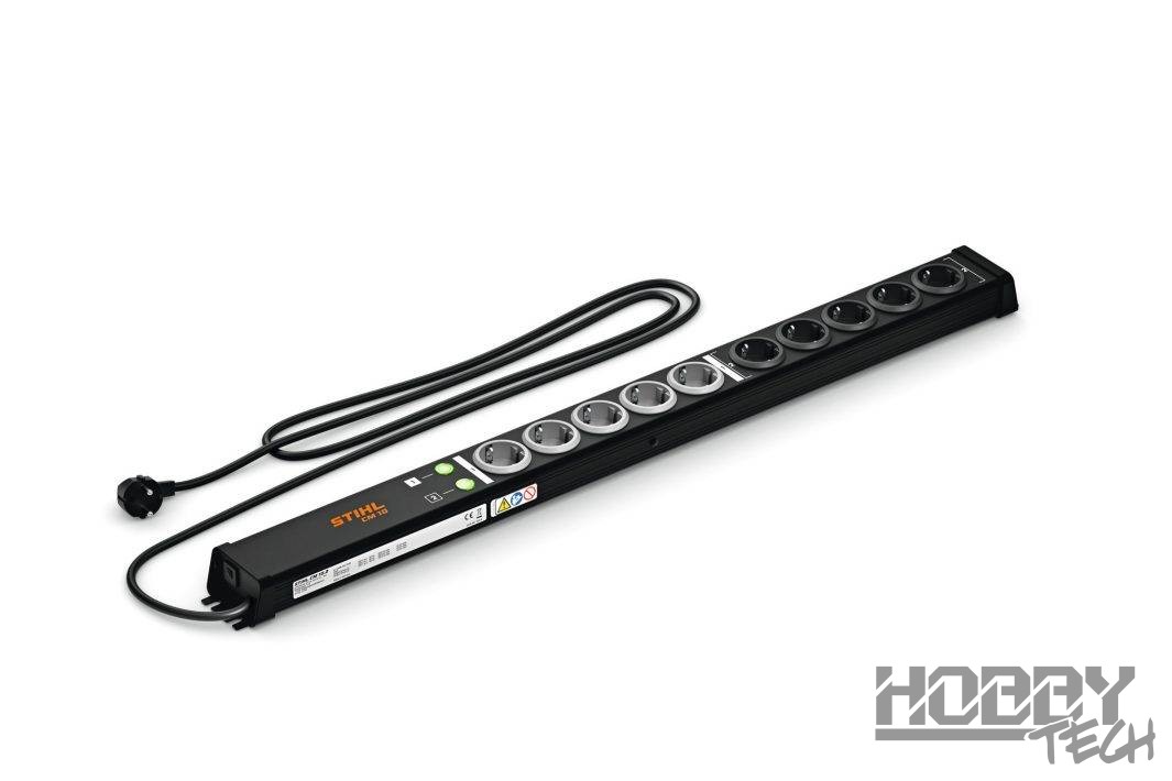 TIHL CM 10 Management nabíjení je praktické řešení pro efektivní nabíjení, ideální zejména pro profesionály v zahradnictví, krajinářství, komunálních službách nebo lesnictví. Umožňuje propojit až 10 nabíječek a nabíjet až 40 akumulátorů na jedné pojistce – ať už v dílně, nebo na cestách.