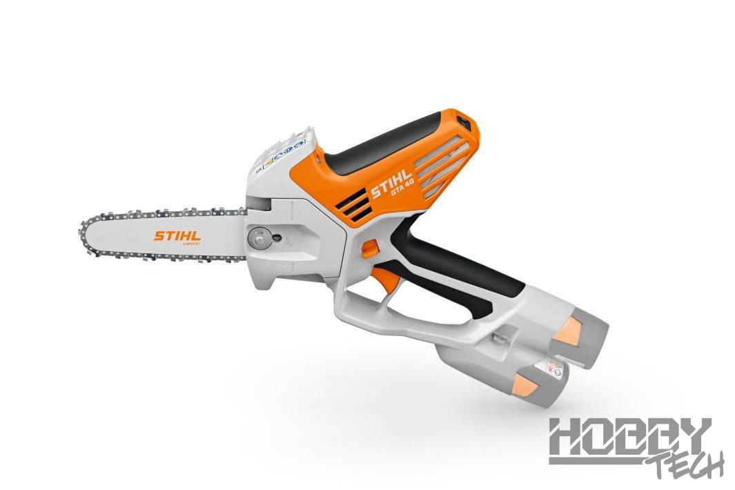 Kombinace mimořádně výkonného motoru EC a pilového řetězu STIHL 1/4“ PM3 zajistí čisté řezy a rychlý postup. Další výhodou pily STIHL GTA 40 je automatické mazání řetězu v závislosti na rychlosti. Pro usnadnění přesné manipulace má akumulátorová pila ergonomicky tvarovanou ovládací rukojeť s ochranou rukou a horním úchopovým bodem pro druhou ruku. Ta je tvarována tak, aby co nejvíce zabraňovala sklouznutí. K dalším užitečným vlastnostem GTA 40 patří mechanický ovládací systém, variabilní rychlost řetězu, kryt vodicího kola s bočním napínáním řetězu a LED indikátor stavu nabití. Nelze zapomenout na ocelová oka s hákem na obou stranách pro připevnění ochrany proti pádu – například při údržbě v korunách stromů.
