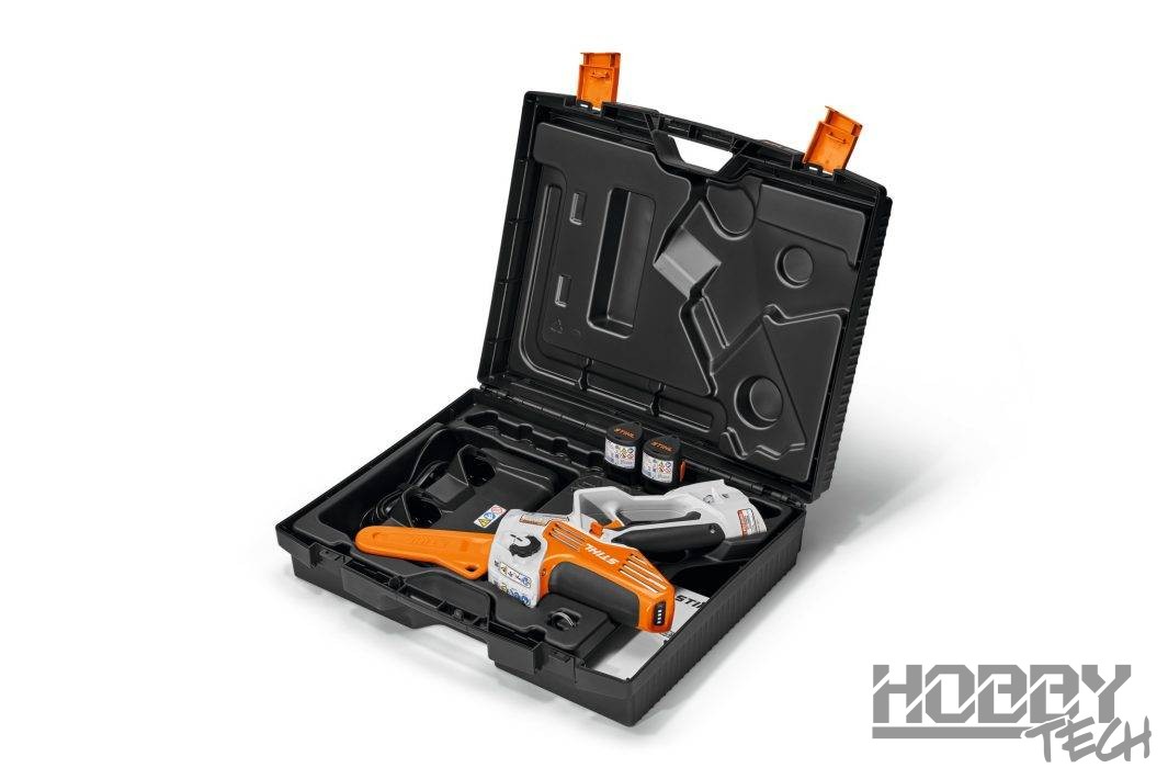 Kombinace mimořádně výkonného motoru EC a pilového řetězu STIHL 1/4“ PM3 zajistí čisté řezy a rychlý postup. Další výhodou pily STIHL GTA 40 je automatické mazání řetězu v závislosti na rychlosti. Pro usnadnění přesné manipulace má akumulátorová pila ergonomicky tvarovanou ovládací rukojeť s ochranou rukou a horním úchopovým bodem pro druhou ruku. Ta je tvarována tak, aby co nejvíce zabraňovala sklouznutí. K dalším užitečným vlastnostem GTA 40 patří mechanický ovládací systém, variabilní rychlost řetězu, kryt vodicího kola s bočním napínáním řetězu a LED indikátor stavu nabití. Nelze zapomenout na ocelová oka s hákem na obou stranách pro připevnění ochrany proti pádu – například při údržbě v korunách stromů.