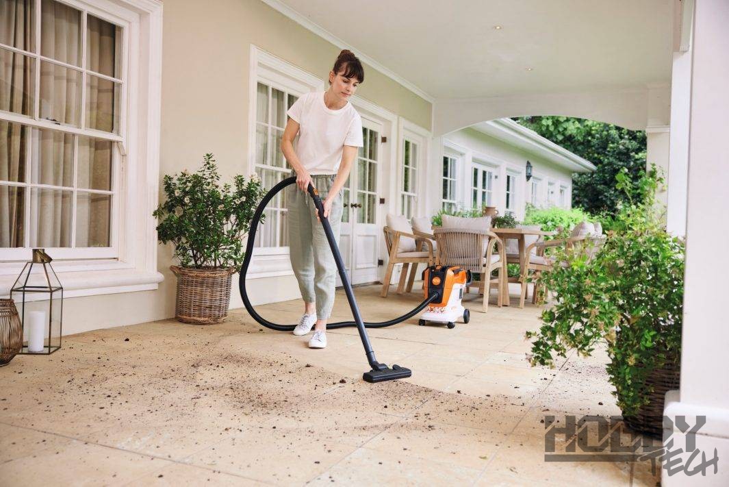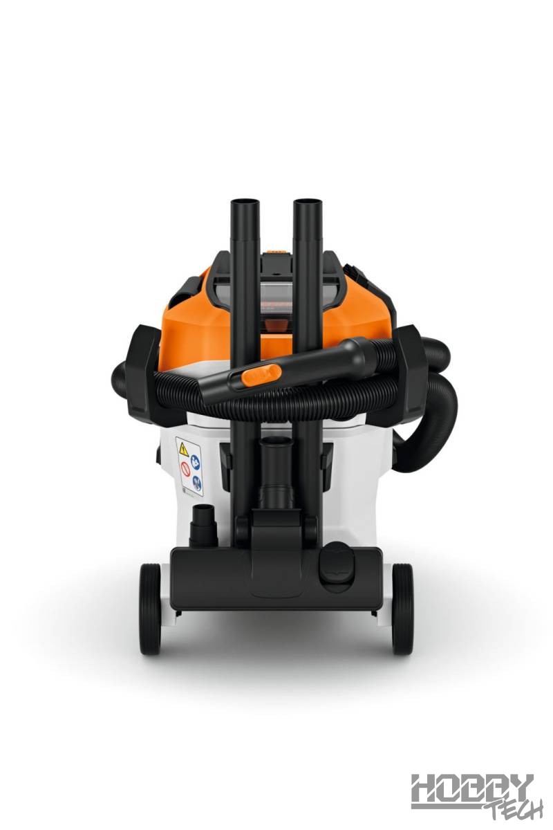Univerzální hubice a štěrbinová hubice jsou u vysavače STIHL SEA 60 L snadno přístupné, takže můžete snadno a rychle přepínat mezi různými způsoby použití. S 2,2 m dlouhou, otočnou sací hadicí a dvoudílnou sací trubicí dosáhnete i do těžko přístupných rohů.
