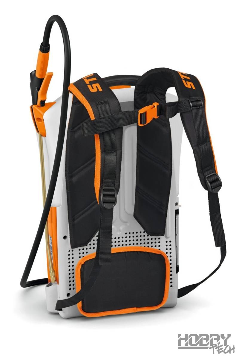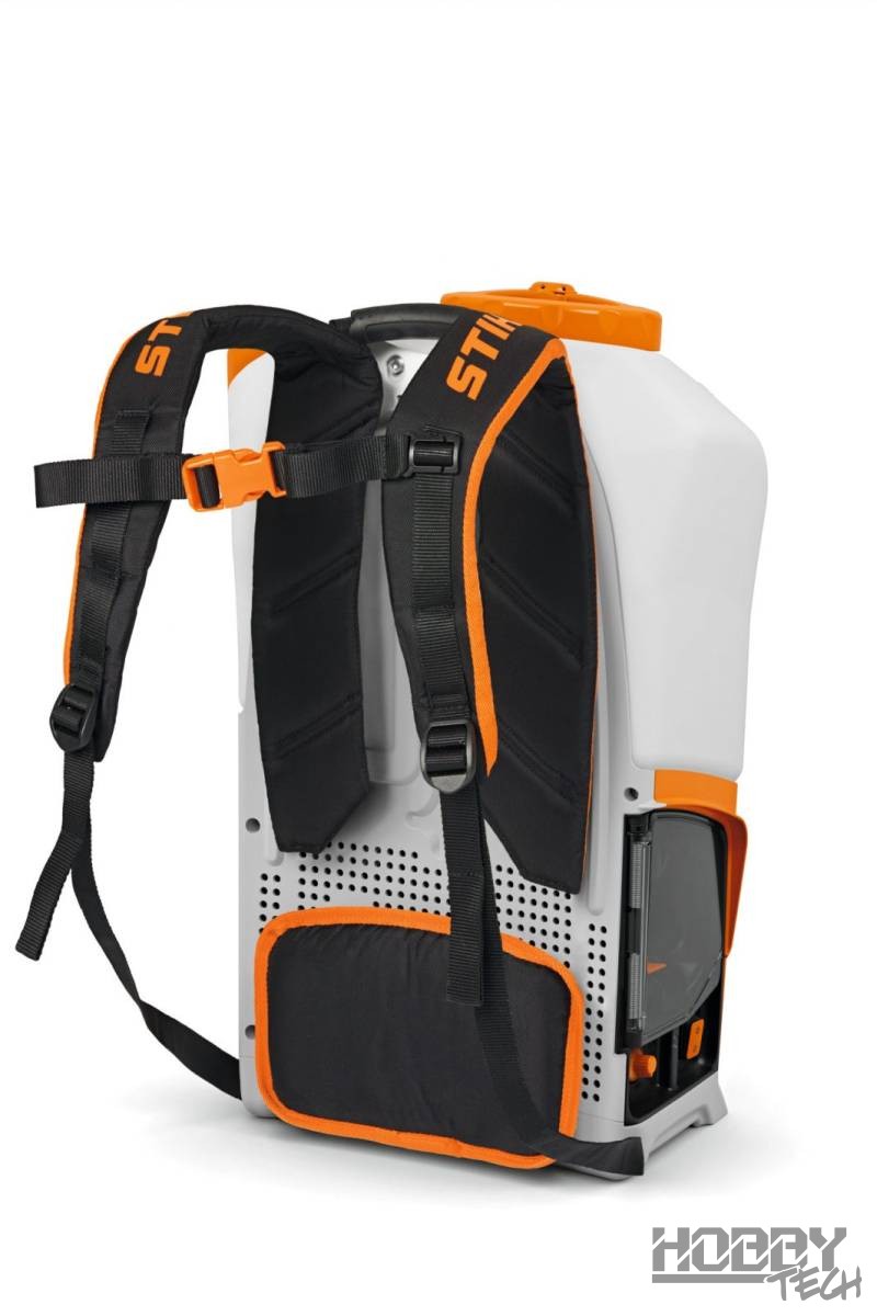 S hmotností pouhých 6,2 kg umožňuje snadné nastavení tlaku v rozmezí od 1 do 6 barů pomocí otočného ovladače. Komfort při práci zajišťuje ergonomický nosný systém s individuálně nastavitelnými ramenními popruhy a výškově nastavitelným hrudním popruhem – ideální i pro delší použití.